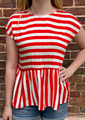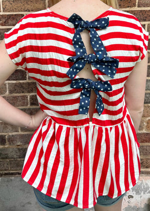 Cute striped shirt with a tie bow back.