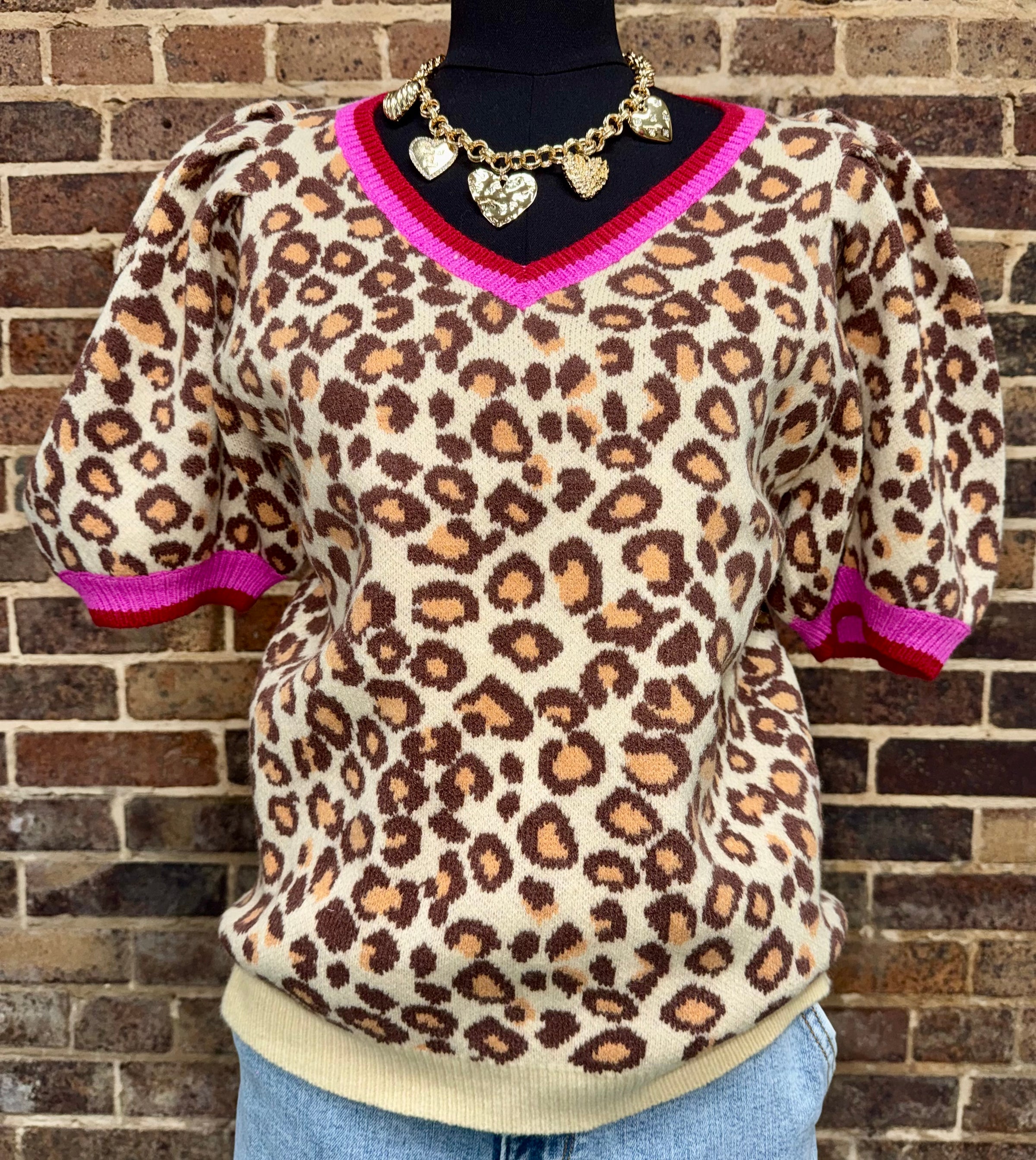 Embrace your wild side with this Romance Leopard Sweater, where vintage charm meets modern edge. Featuring eye-catching leopard print in rich reds and pinks, voluminous puff sleeves add a touch of drama and romance to any outfit. The flattering V-neckline keeps things sophisticated while the cozy knit fabric wraps you in comfort. Perfect for layering over basics or styling as a statement piece, this sweater brings personality and flair to your everyday wardrobe.