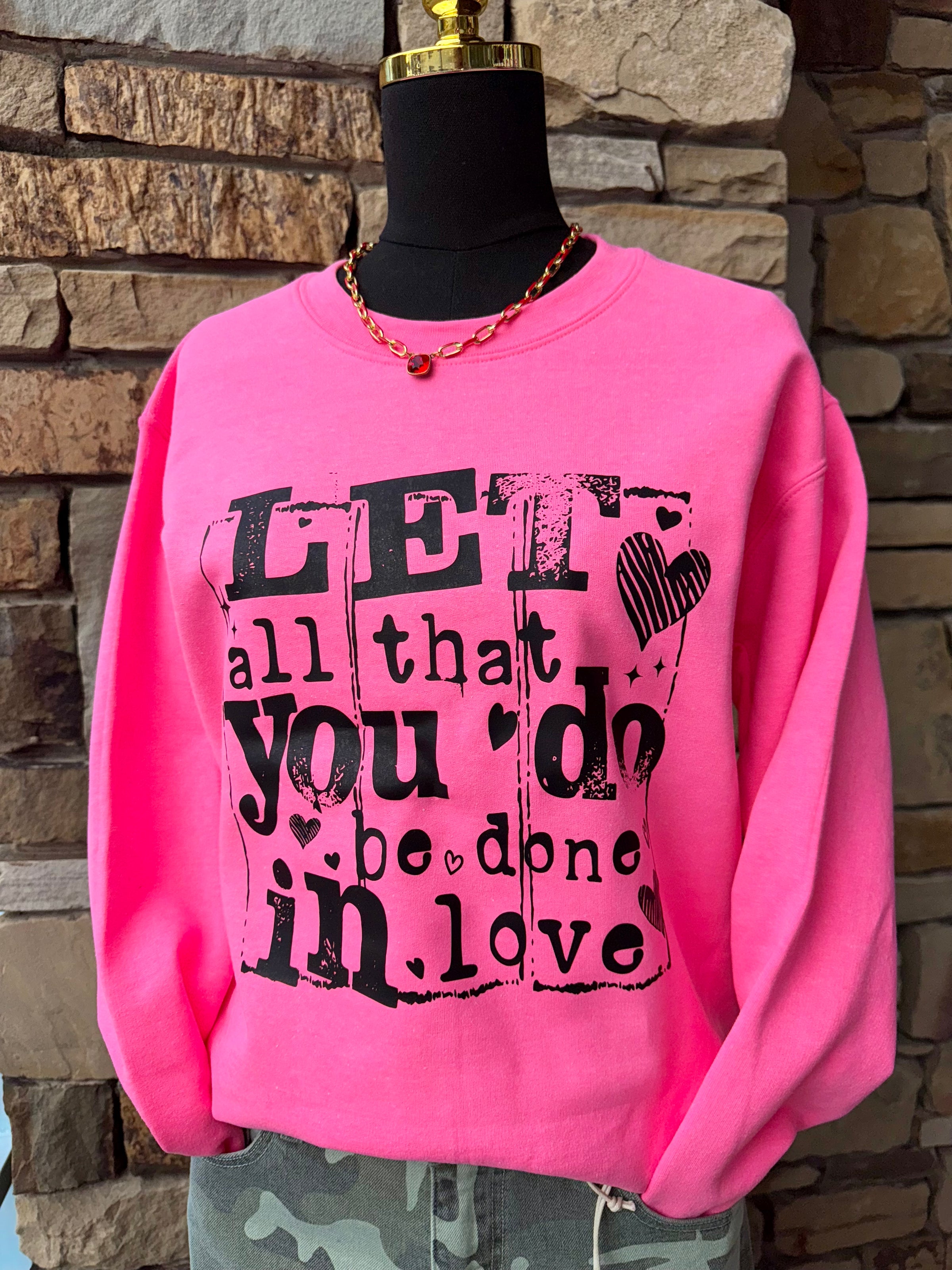 Spread the love this Valentine's Day in our vibrant hot pink crewneck! Perfect for declaring your feelings with style, this cozy essential features a classic crewneck design that works for casual hangouts or date night. The bold, eye-catching color says "I'm in love" without saying a word. Soft, comfortable, and undeniably cute—your new favorite piece is here.