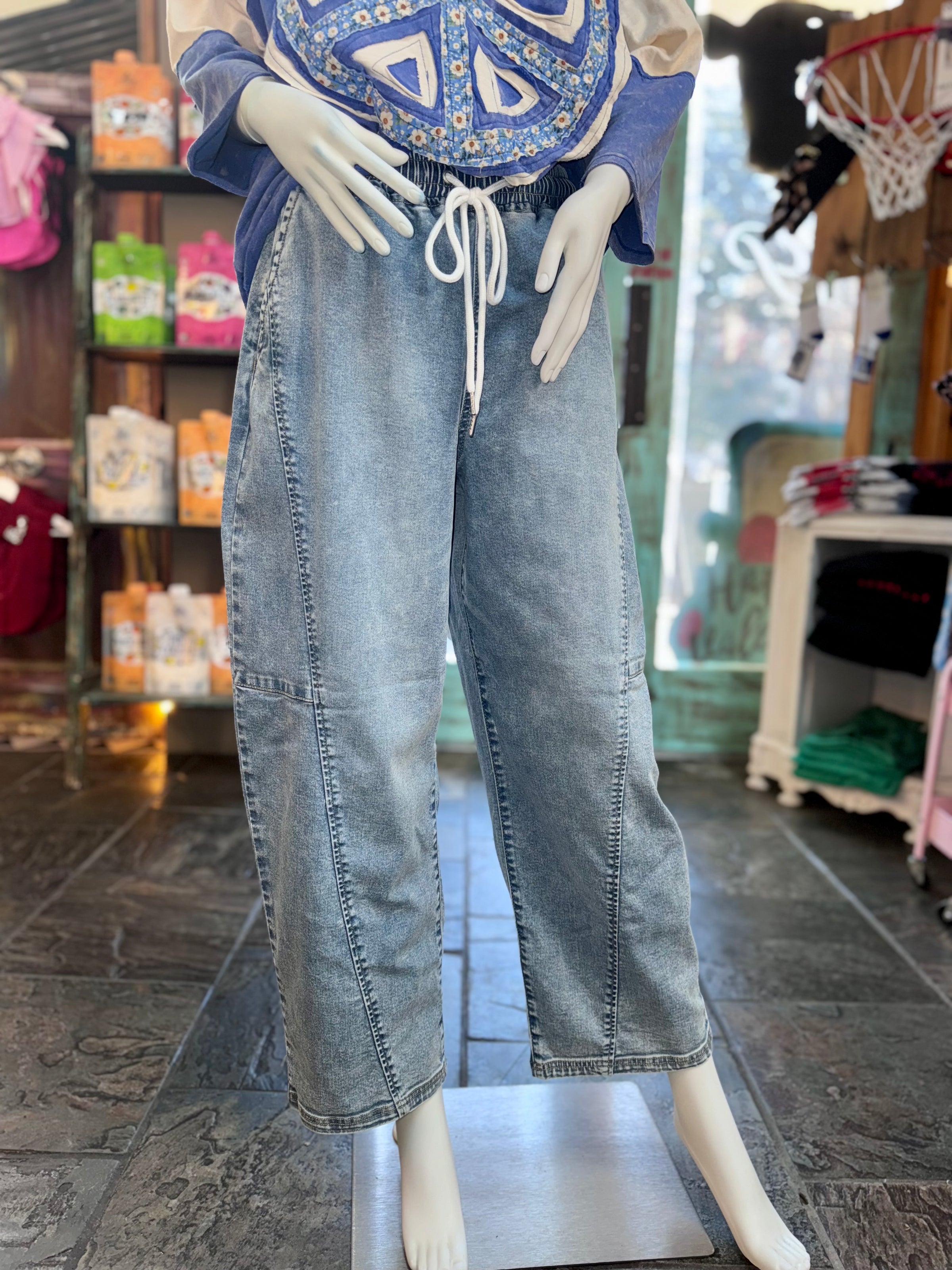 Risen Drawstring Barrel Jeans