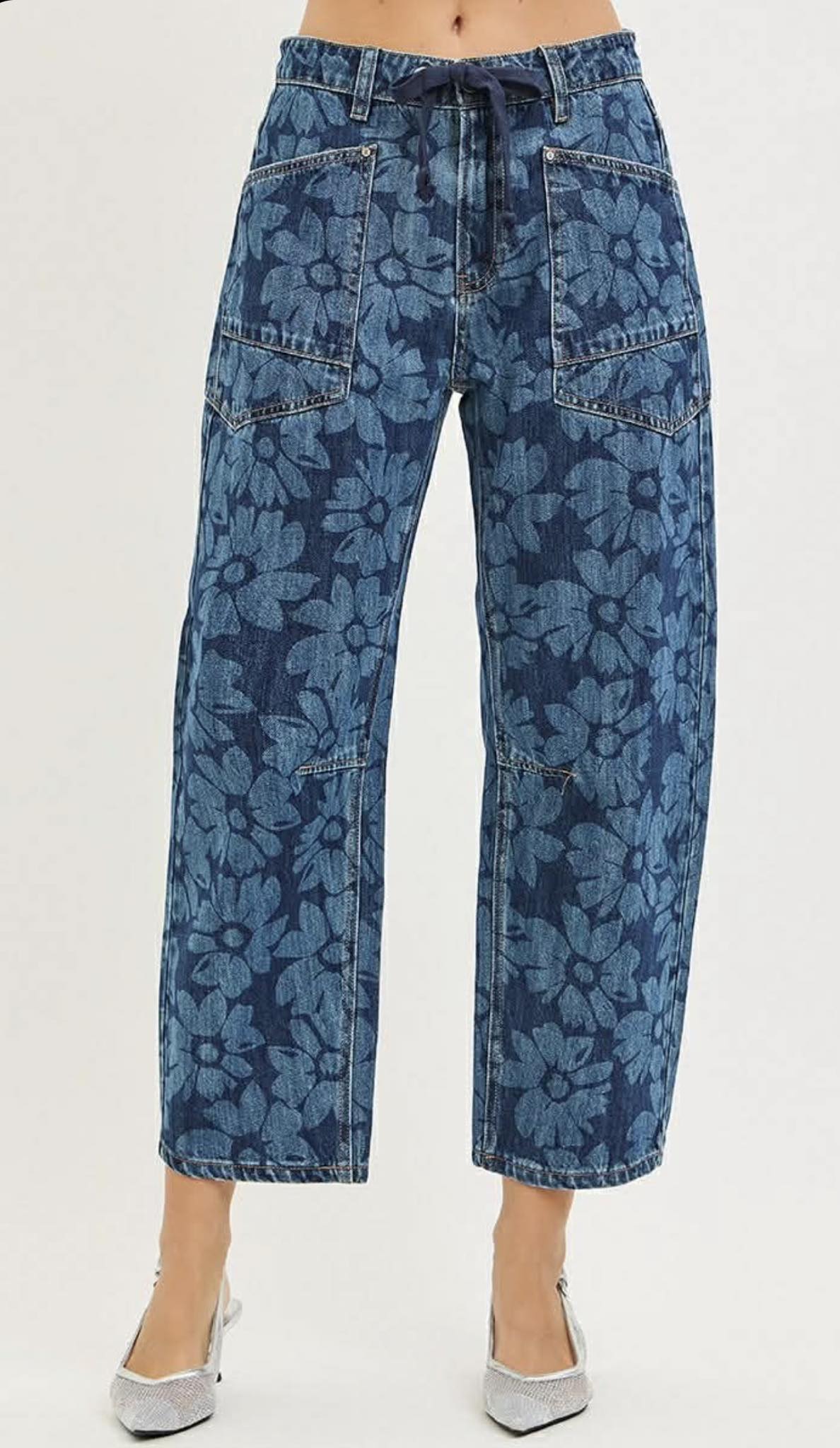 Risen Floral Barrel Jeans