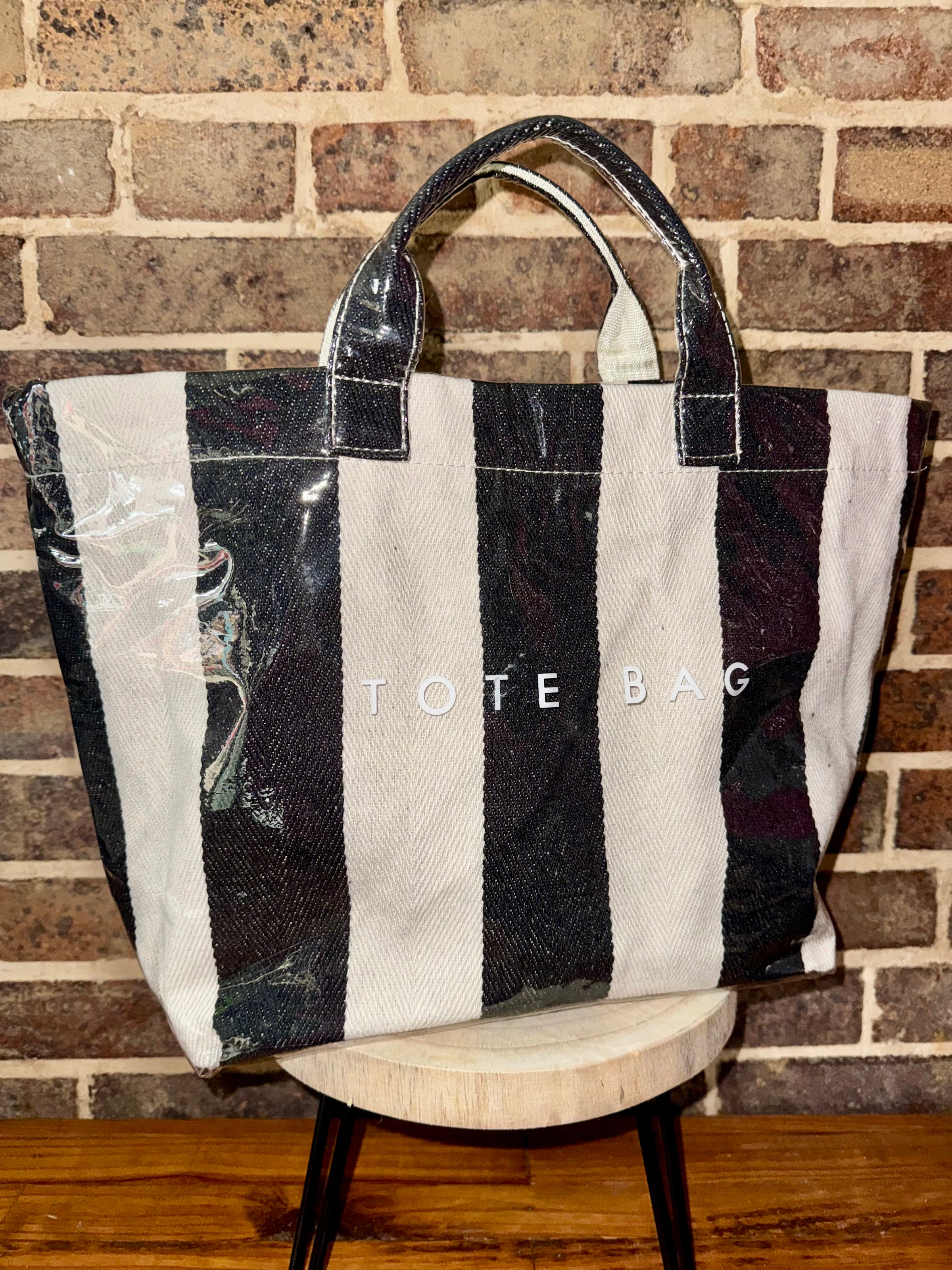 Carry your essentials in style with this vibrant striped tote bag! Featuring a durable plastic outer layer that keeps your belongings protected from the elements, this roomy bag is perfect for beach days, shopping trips, or everyday adventures. The bold stripes add a fun pop of personality to any outfit, while the sturdy construction ensures it'll be your go-to companion for years to come. Whether you're heading to the farmer's market or packing for a weekend getaway, this tote's got your back—literally!