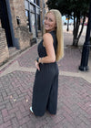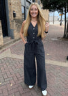 Cute for Sunday brunch or a banquet! Love the functional buttons and the cute tie belt. Wide leg with a denim look and deep pockets.