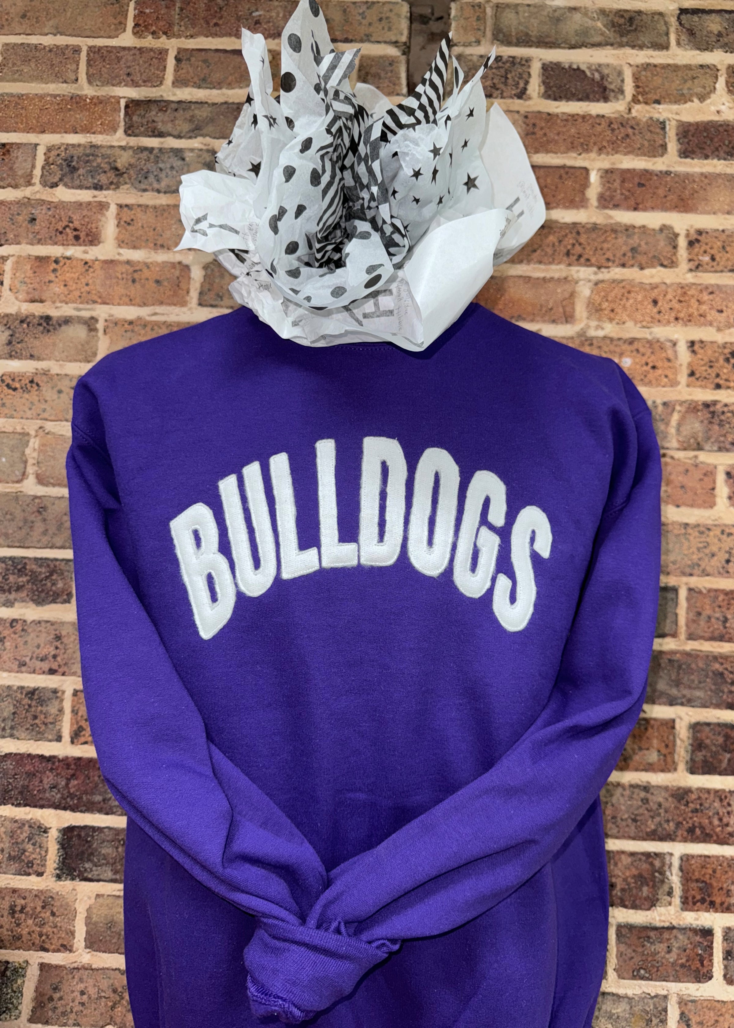 Bring the spirit and style with this cozy, eye-catching sweatshirt! Featuring a bold “Bulldogs” graphic in varsity-style black lettering across the front, this sweatshirt makes a statement whether you’re cheering on your team or running weekend errands. The vibrant purple color adds a fun pop to your wardrobe, and the relaxed fit keeps things comfy all day long.