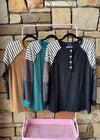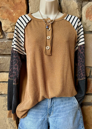 Why choose one vibe when you can rock three in one? The Mix It Up Ribbed Top brings the heat with bold color blocking, contrast stripes, and a hint of leopard — all tied together in a cozy ribbed knit that feels like a hug. Lightweight, stretchy, and a little wild, this top is your new go-to for laid-back days that still need a little extra spice. Available in three bold color combos — because basic just isn’t in your vocabulary.